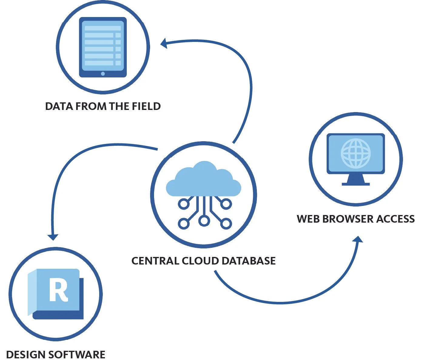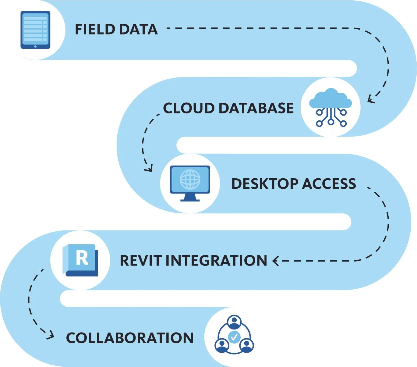 The process, outlined below, includes transferring field data about existing equipment to a cloud database through a mobile app, creating desktop access to the centralized data for reference and editing, and integrating with a 3D design model to perform batch data updates.
