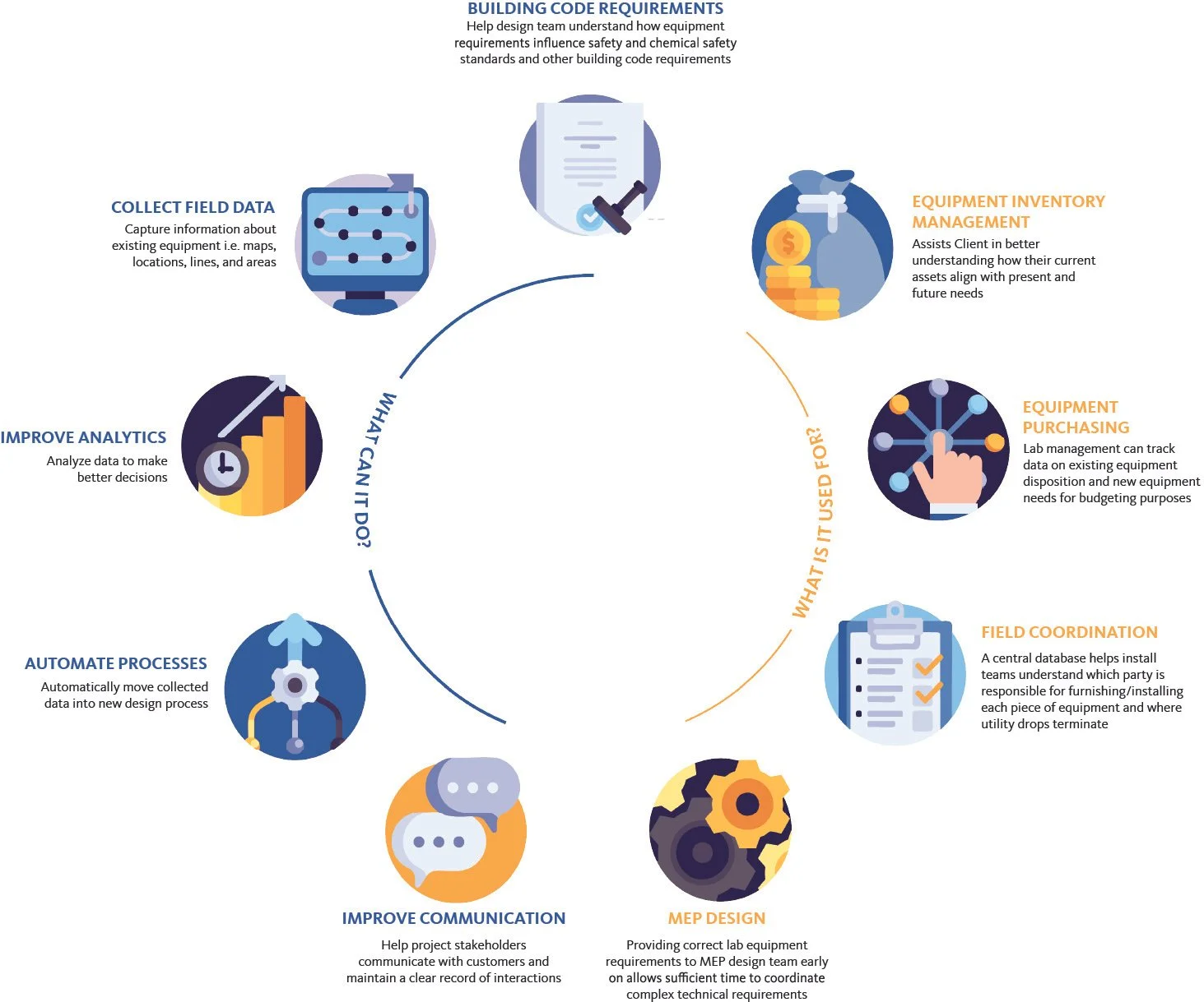 Equipment in labs is expensive, highly specialized, and often outlives the space it is used in. As a result, research organizations struggle with the equipment planning aspect of laboratory relocations due to staffing and time constraints. However, getting the equipment right is essential for the lab to function as designed. Inaccurate or incomplete data resulting from data silos, information gaps and manual data entry can cause costly design or project delays.